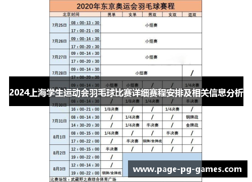 2024上海学生运动会羽毛球比赛的赛程安排经过了精心设计,以确保赛事能够顺利进行并兼顾观众的观看体验。比赛将在上海的多个场馆举行,赛程计划从开幕式的第一天起至闭幕式的最后一刻,历时约一周的时间。